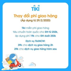 Tiki thông báo thay đổi phí giao hàng kể từ ngày 29/02/2020: