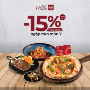 1. Giảm 15% hóa đơn + Free Coca cho thành viên Red Sun