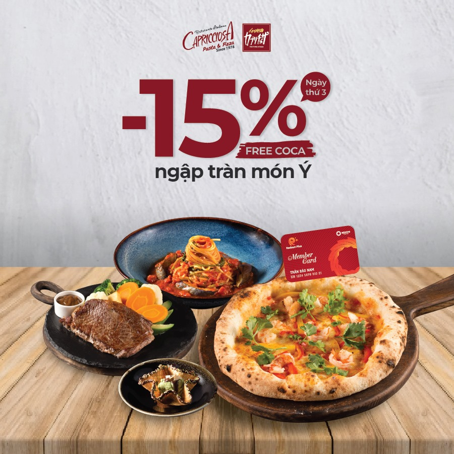 Thưởng thức trọn vẹn tinh hoa ẩm thực Ý cùng những món ngon tại Capricciosa mà không lo viêm màng túi, Tiền đâu rồi sẽ giúp bạn tiết kiệm bằng những ưu đãi hấp dẫn sau đây nhá!