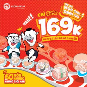 – [Miền Nam] Buffet chỉ 159K/suất (chưa bao gồm VAT) khung giờ từ 10h00 – 17h00; Khung giờ từ 17h00 – 22h00: 179.000đ/người tại Kichi Kichi miền Nam. HSD: 30/6