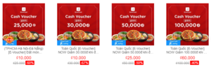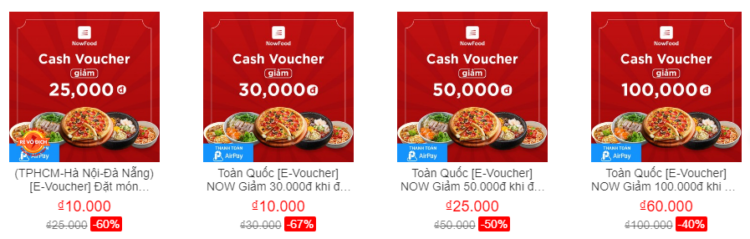 Ví dụ, nếu bạn mua E-Voucher Now 30K đang được khuyến mãi với giá chỉ 10K  –> nghĩa là bạn nhận được mã giảm 30K khi đặt hàng Nowtiết kiệm cho mình 20K phần chênh lệch rồi