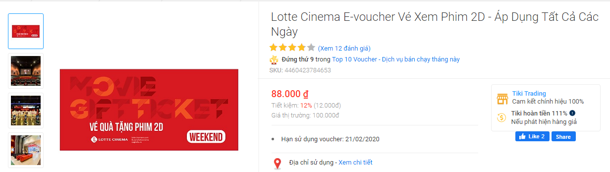 2, Voucher vé xem phim Lotte trên Tiki áp dụng tất cả các ngày trong tuần. Link mua>>