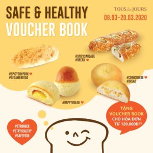 Với mỗi hóa đơn từ 120K, bạn sẽ nhận được một voucher book của Tous les Jours.