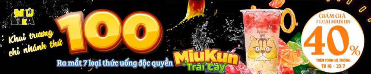 Mừng chi nhánh Miutea thứ 100 ra đời tại 143 Lê Hồng Phong, p3, Q5, giảm giá 50% hóa đơn trong 3 ngày 16,17,18/07/2019 và ra mắt 7 loại thức độc quyền MIUKUN. Toàn bộ các cửa hàng Miutea giảm giá 40% 7 loại thức uống độc quyền trên.