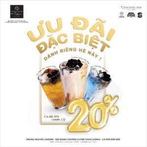 - Giảm 20% toàn menu thức uống khung giờ vàng từ 15 giờ đến cuối ngày