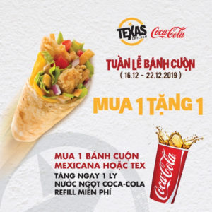 Ưu đãi hấp dẫn MUA 1 Bánh cuộn Tex hoặc Mexicana TẶNG 1 ly nước ngọt Coca – Cola