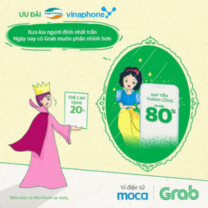 Duy nhất ngày 30/08, nạp tiền điện thoại VinaPhone/ Viettel qua Ví điện tử Moca trên ứng dụng Grab, bạn được: KHUYẾN MÃI 20% & HOÀN TIỀN 10% giá trị thẻ nạp.
