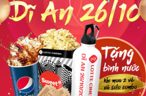 • Ngày 26 – 27/10/2019: Tặng ngay bình đựng nước khi mua 02 vé xem phim và Solo Combo (1 bắp lớn + 1 nước lớn).