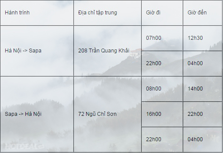 Địa điểm sử dụng voucher: LUXURY VAN SAPA 16 Hang Chinh St, Hoan Kiem Dist, Hanoi, Vietnam