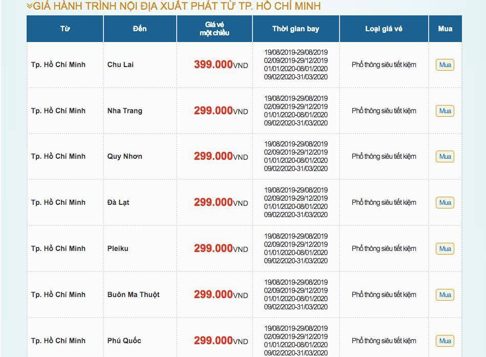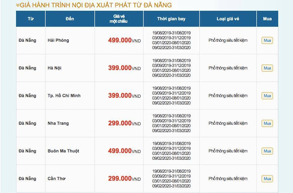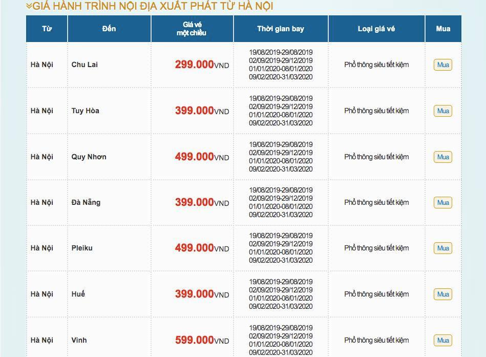 Bay nội địa chỉ từ 299.000 đồng/chiều