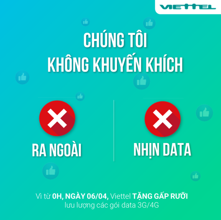 Viettel áp dụng chương trình khuyến mãi thêm 50% dung lượng gói data 3G/4G bạn đăng ký bắt đầu từ 6/4.