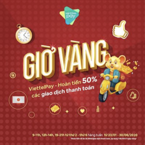 – Áp dụng cho tài khoản ViettelPay đăng ký từ ngày 23/01/2020 và thực hiện giao dịch thanh toán bằng ViettelPay.