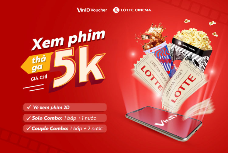 Chỉ với 5,000đ sở hữu ngay vé xem phim hoặc combo bắp nước tại Lotte Cinema,