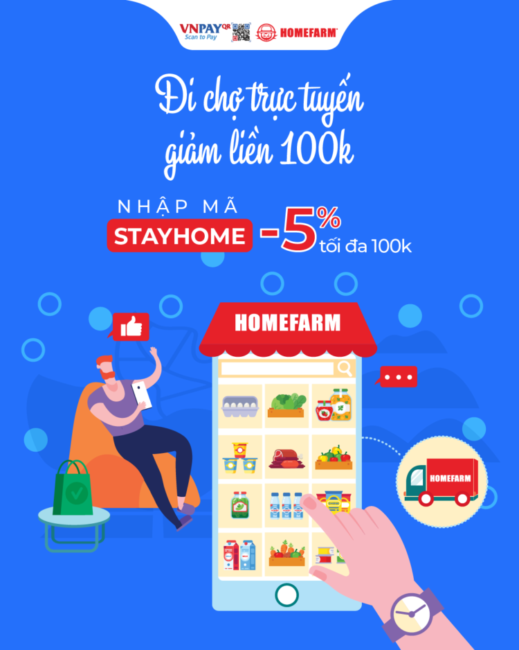 Nhập mã: STAYHOME Giảm 5% tối đa 100k. Áp dụng 01 lần/tuần, tại các cửa hàng Homefarm Hà Nội