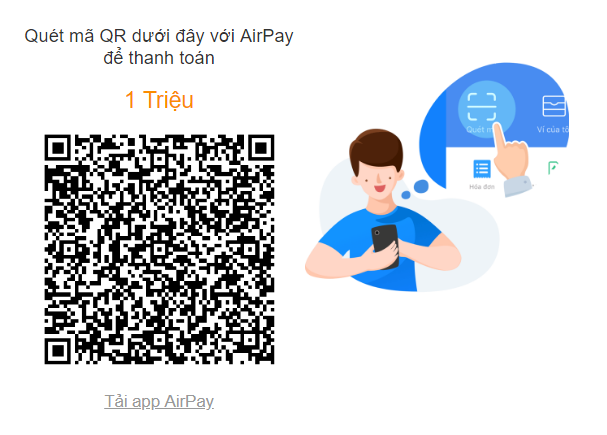 • Bước 4. Quét mã QR* với ứng dụng AirPay để thanh toán với tài khoản AirPay của bạn.