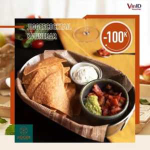 Từ ngày 29/10/2019 – 23/12/2019, Jigger Cocktail & Wine Bar mang đến ưu đãi giảm ngay 100.000 đồng, áp dụng cho bàn từ 4 người trở lên .