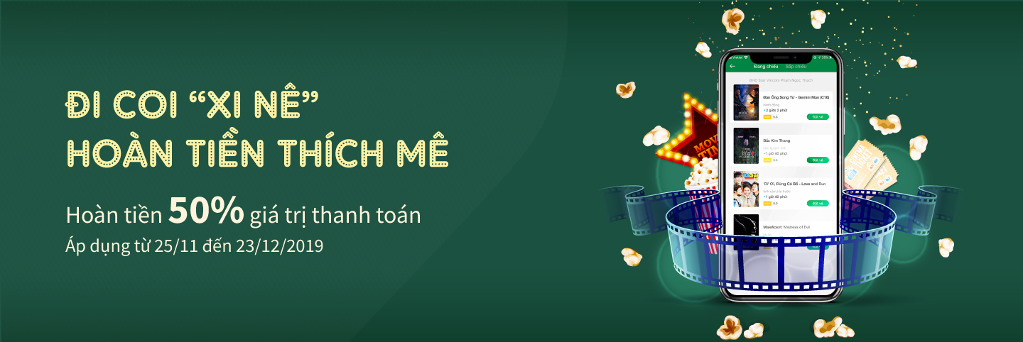 HOÀN TIỀN 50% GIÁ TRỊ THANH TOÁN (tối đa 50,000 VND) khi đặt vé xem phim trực tuyến trên ứng dụng VPBank Online cho 200 khách hàng đầu tiền mỗi tuần .
