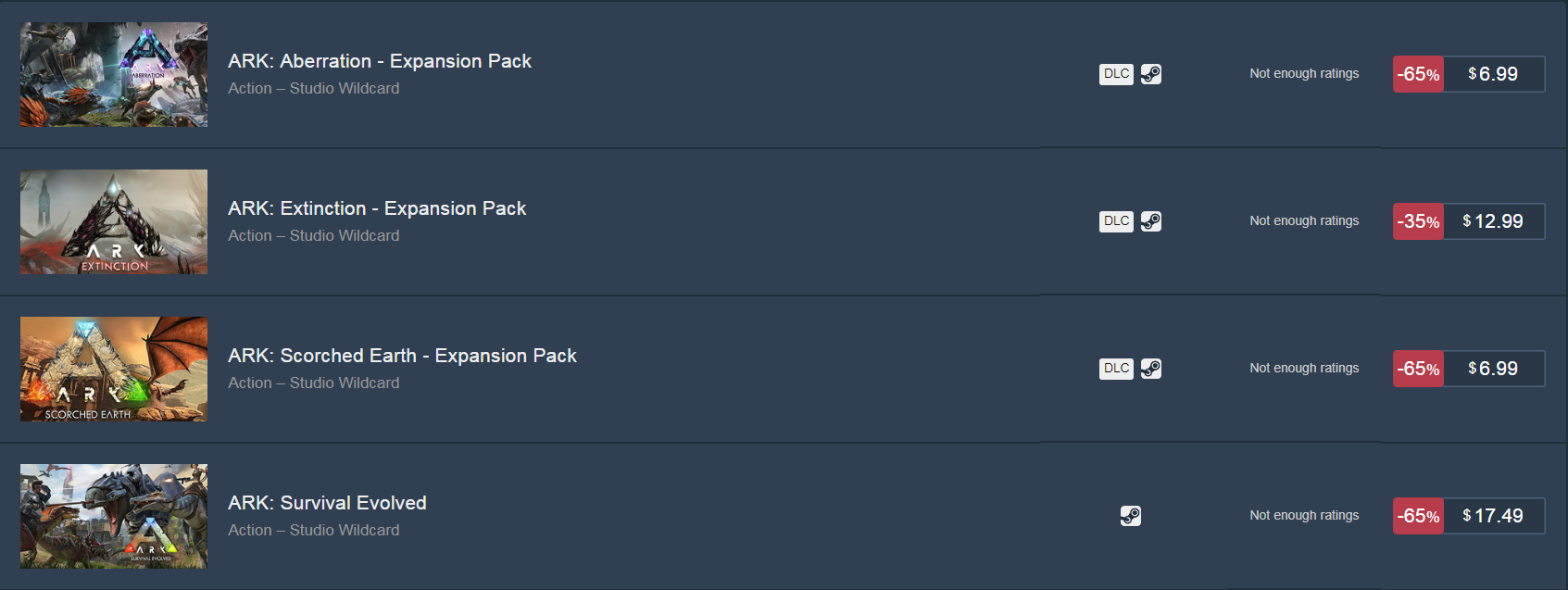 Game ARK Survival Evolved giảm giá mạnh các packs tới 65% tại Win Games Store.