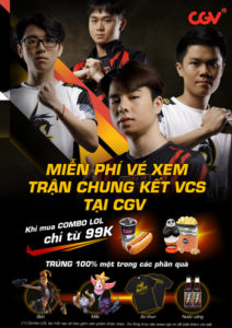 Với mỗi combo LOL khách hàng sẽ nhận coupon đổi vé xem trân chung kết VSC tại rạp CGV mà khách đã mua combo
