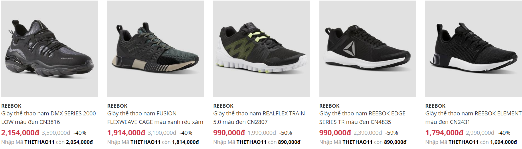 Các sản phẩm 390k thì đã có lựa chọn về size cũng như kiểu dáng hơn, và so với mức giá bán tại trang chủ của Reebok thì có thể nói là hấp dẫn.