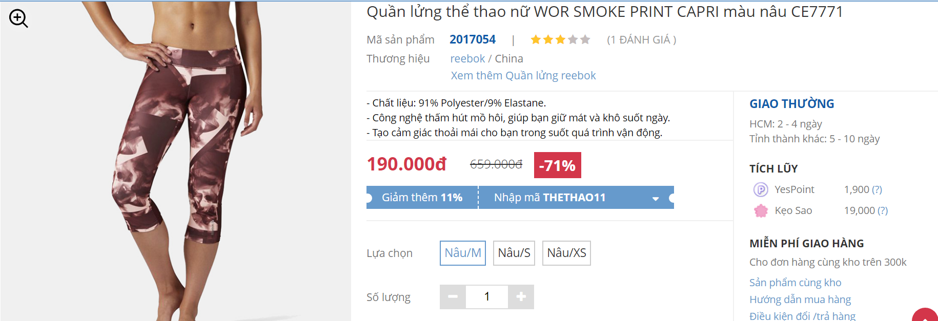 Hầu hết các sản phẩm mang giá 190k là những sản phẩm áo tank top, áo phông, quần yoga,… mang giá 190k. Tuy nhiên size cực ít, và hầu như chỉ có size XS – cực bé, cho tới M.
