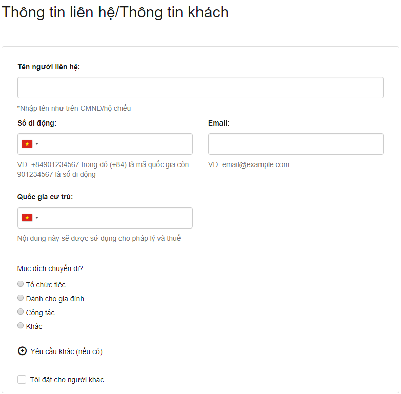 - Điền đầy đủ thông tin được yêu cầu về Booking của bạn