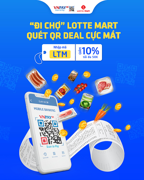 Lottemart giảm 10% khi thanh toán quét VNPAY QRvà nhập mã LTM