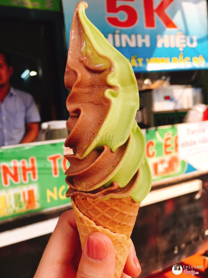 Nhưng cũng đừng vì thế mà coi thường, ở quán có món kem tươi lừng danh khu vực Cầu Giấy sẽ khiến bạn phải “rùng mình”. Rùng mình không phải là do ăn kem dưới thời tiết lạnh buốt mà là cảm giác bất ngờ khi chỉ với 5k bạn đã có thể thưởng thức cây kem ốc quế mix 2 vị socola-trà xanh vô cùng chất lượng không hề kém cạnh kem Circle K mà còn dài gấp rưỡi nữa chứ.