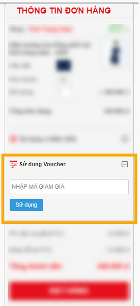 Bước 1: Ở trang đặt hàng sẽ thấy mục “Sử dụng mã giảm giá” và một ô trống bên dưới.