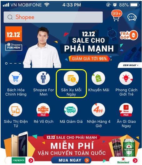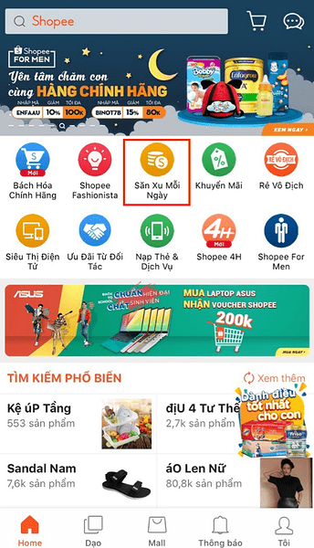 • Cách 1: từ trang chủ, bấm vào mục “Săn xu mỗi ngày”