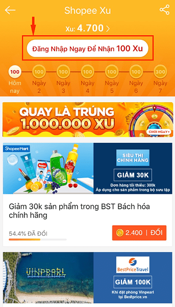 Cách 1: Đăng nhập hằng ngày, nhận Xu liền tay!