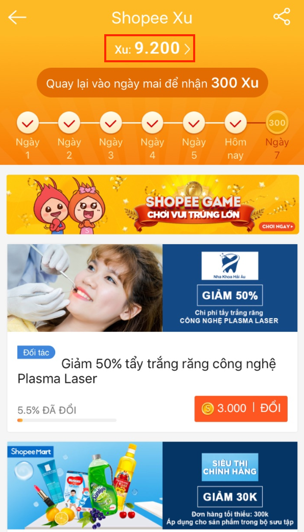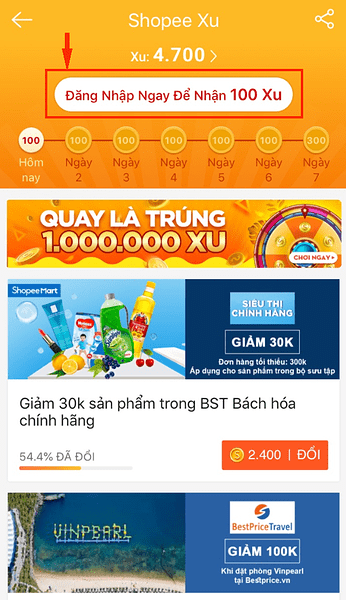• Mỗi ngày bạn chỉ được nhấn “Nhận Xu mỗi ngày” tối đa 1 lần để nhận Shopee Xu.