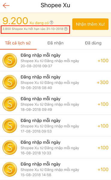 Khi bạn dùng Shopee Xu để thanh toán, những Xu cũ sẽ được sử dụng trước.