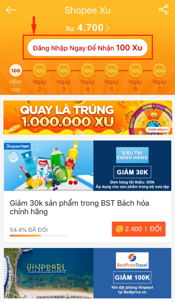 Các bước để có thể nhấn ” Nhận Xu mỗi ngày
