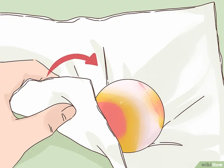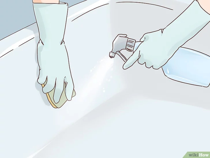 Một số bom tắm có sử dụng màu nhuộm nên sẽ để lại màu trên bồn tắm. Màu nhuộm sẽ dễ tẩy sạch khi còn ẩm. Dùng mút xốp vệ sinh bồn tắm hoặc bàn chải để chà sạch màu nhuộm dính trên bồn. Nếu có cánh hoa hoặc kim tuyến trong bồn tắm, bạn có thể lấy ra hoặc mở nước sạch để chúng trôi xuống lỗ thoát nước.