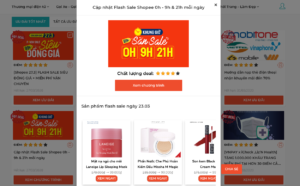 Bước 1: Chọn 1 mục trong 4 mục chương trình KM của các trang TMĐT: Tiki, Shopee, Lazada, Adayroi, Sendo; và 1 mục cho sự kiện mua sắm lớn nhất đang diễn ra.