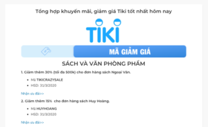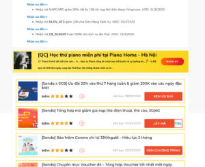 Bước 2: Khi click vào 1 trong 4 mục thì bài tổng hợp các chương trình KM và mã giảm giá về trang TMĐT bạn đã chọn sẽ hiện ra. Các chương trình sẽ được cập nhật liên tục, và bạn sẽ chỉ cần 10s để biết được đang có chương trình KM nào tốt.