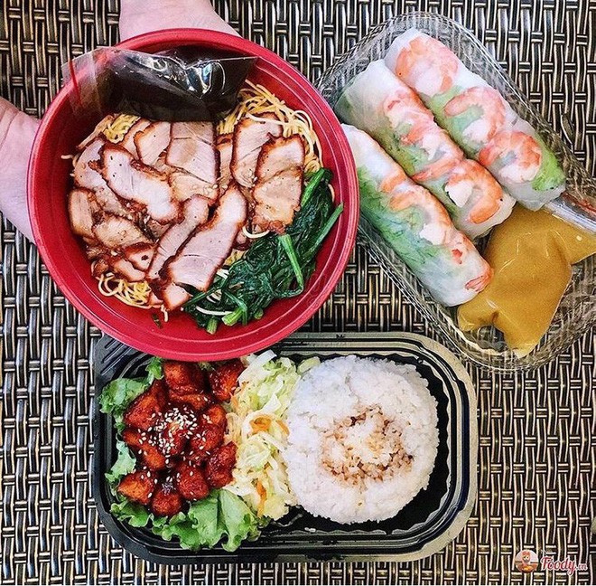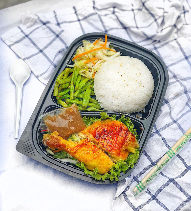 Thực đơn của quán gồm khoảng 10 lựa chọn với đủ loại cơm, cơm rang, bánh mì đen. Các phần ăn ở tiệm cơm online này có một điểm cộng là ghi rõ lượng calories nên còn hợp để sử dụng cho người tập gym, chơi thể thao, cần kiểm soát cân nặng.