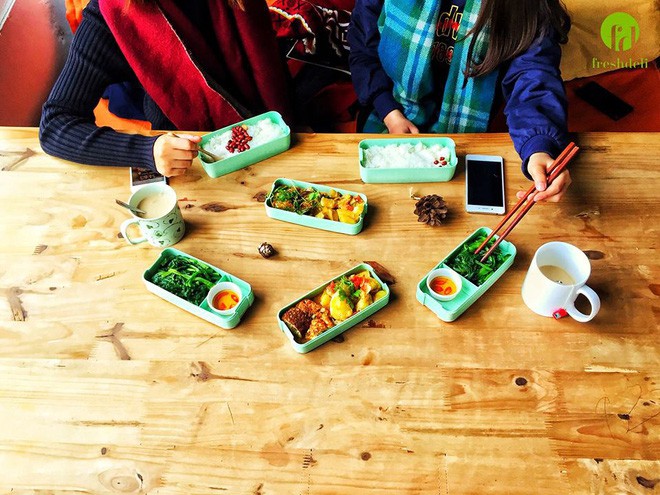 Cơm của Fresh Deli có 2 mức size M, L với mức giá tương ứng là 40 và 50 ngàn. Cơm được đựng trong trong hộp nhựa nhiều ngăn như bữa trưa bạn vẫn tự tay chuẩn bị, cùng thìa, đũa có thể tái chế và sẽ được thu về vào buổi chiều.