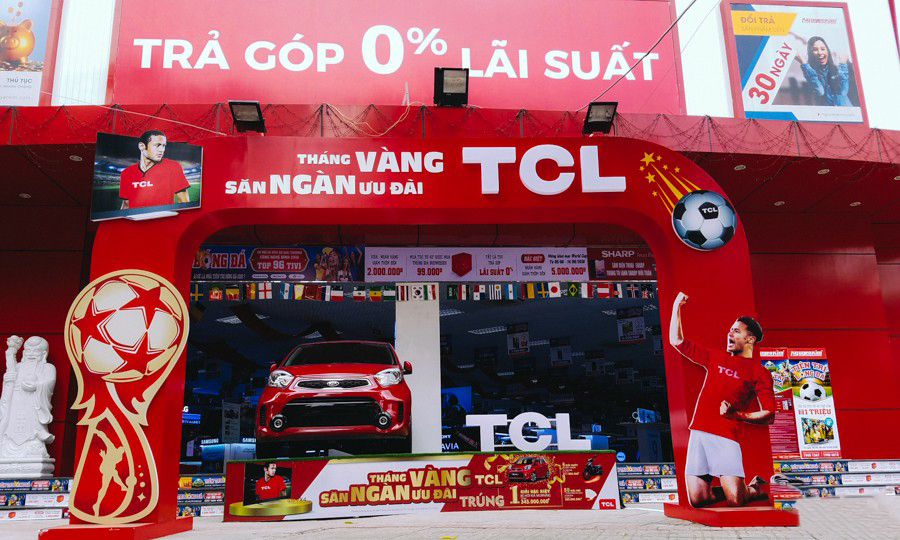 Một số siêu thị điện máy cũng “mạnh tay” quảng cáo và tung ra nhiều chương trình ưu đãi hấp dẫn như mua trả góp lãi suất 0%, mua tivi trúng thưởng hoặc khuyến mãi giảm giá,… Thậm chí các siêu thị điện máy này còn để bảng khuyến mãi mùa World Cup ngay tại bãi giữ xe cho khách hàng dễ nhận biết.